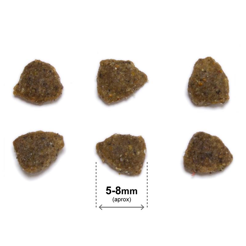 SKŁAD: 50% suszone mięso (20% kurczak), pszenica, ryż, tłuszcz z kurczaka (źródło kwasów tłuszczowych O-6), produkty uboczne ze zbóż, groszek, hydrolizat białka z kurczaka, drożdże i ekstrakt drożdżowy-Saccharomyces cerevisiae (źródło mannanooligosacharydów) – MOS i ß-glukany), pulpa buraczana, strąki chleba świętojańskiego, witaminy i minerały, hydrolizowana wątróbka drobiowa, olej z łososia (źródło kwasów tłuszczowych O-3-EPA i DHA), suszone jajo, inulina (rozpuszczalny błonnik z cykorii, źródło fruktooligosacharydów) – FOS), rozpuszczalny błonnik pokarmowy ekstrahowany z Plantago ovata, jukki.